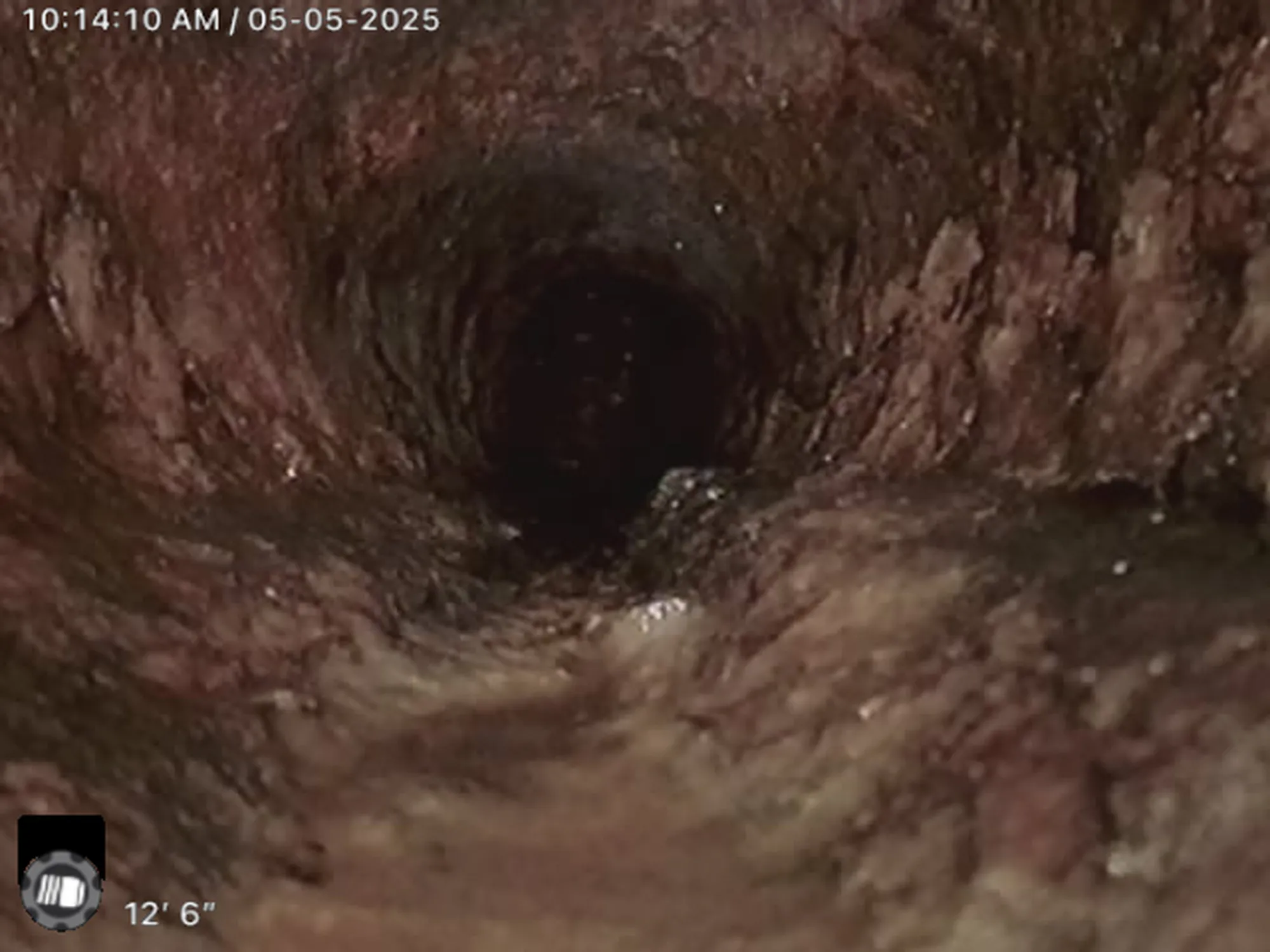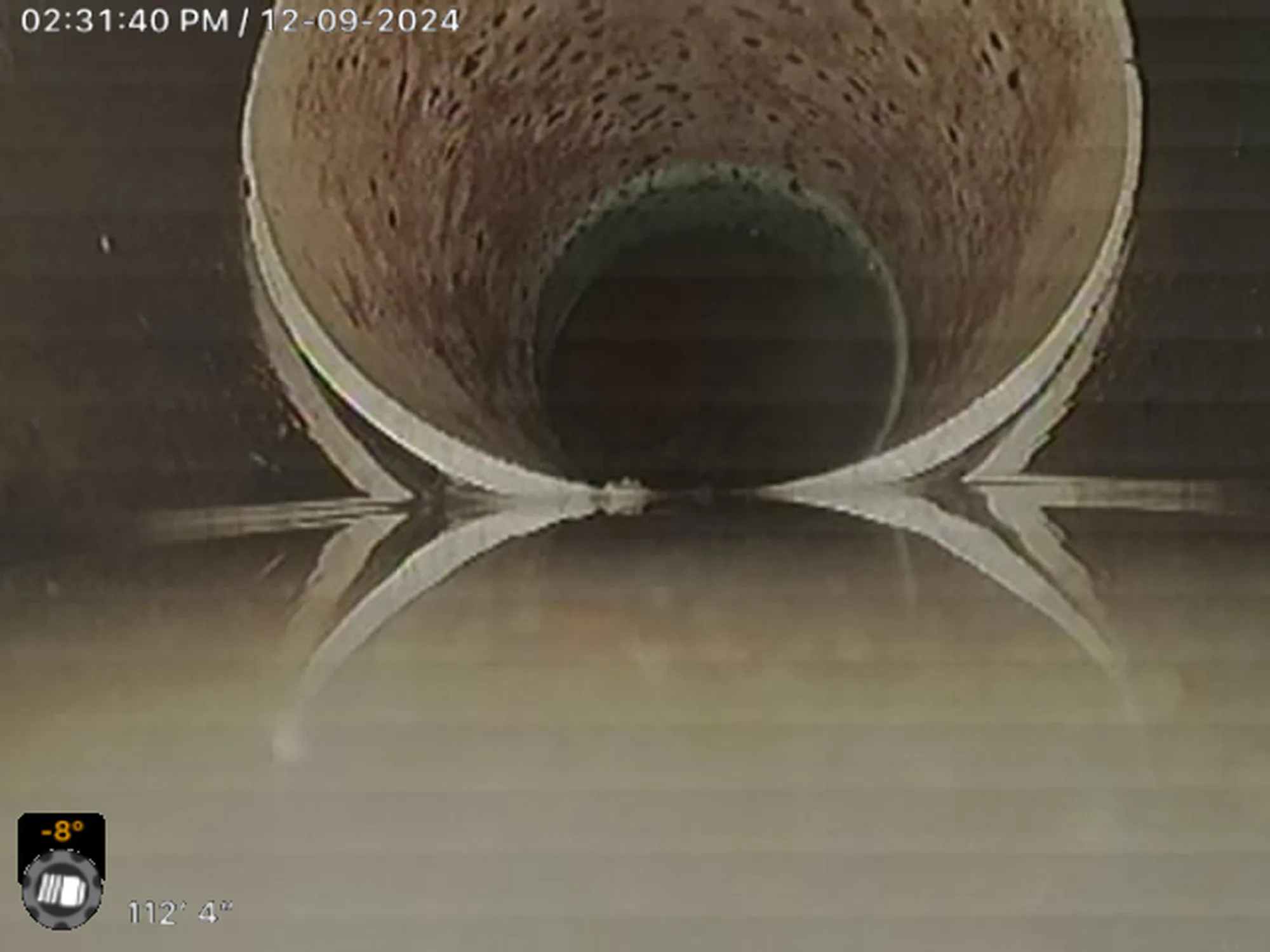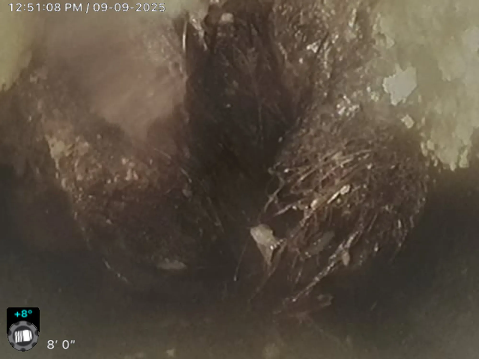 This can indicate internal pipe damage or sagging (belly) in the line that restricts flow.
